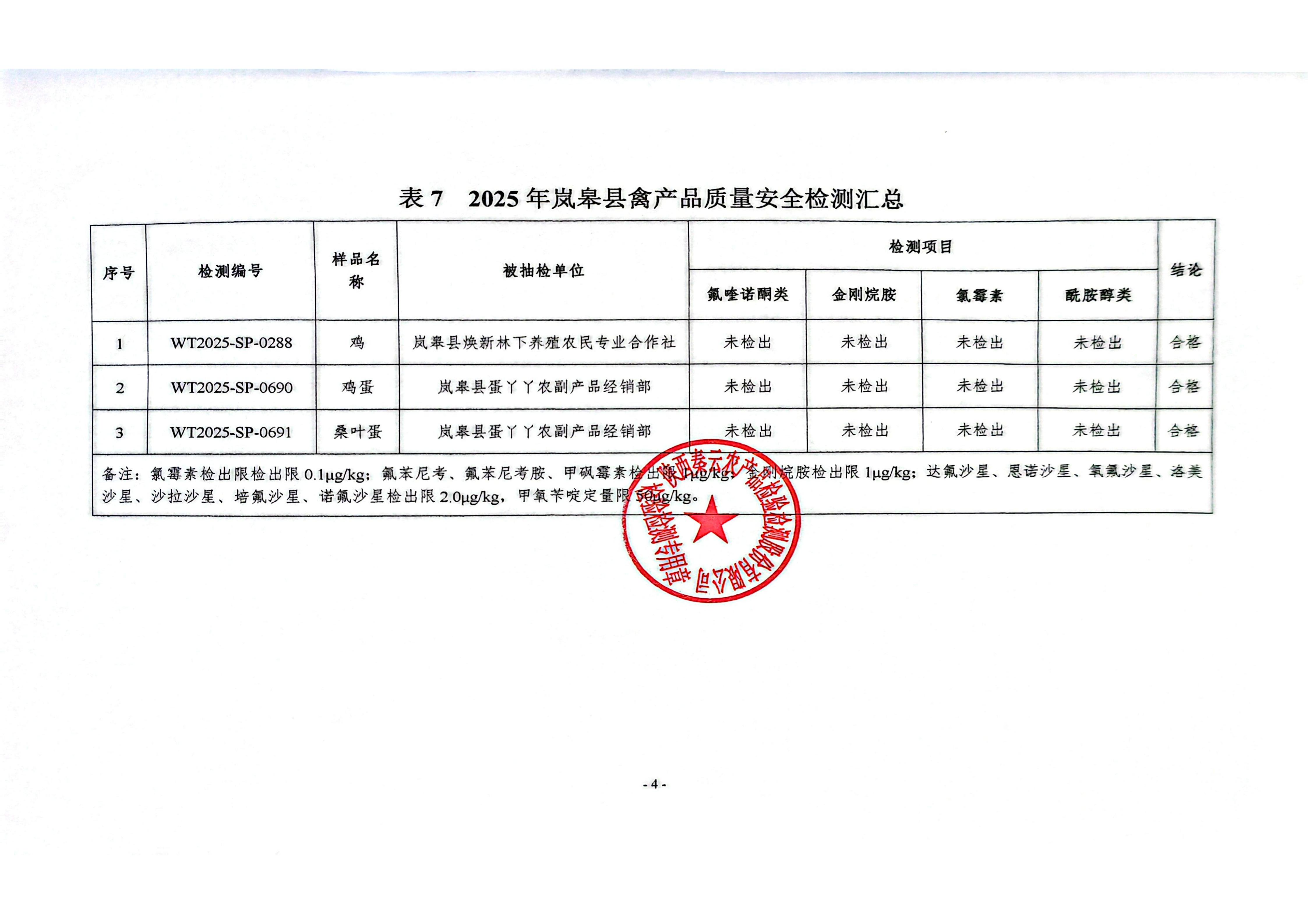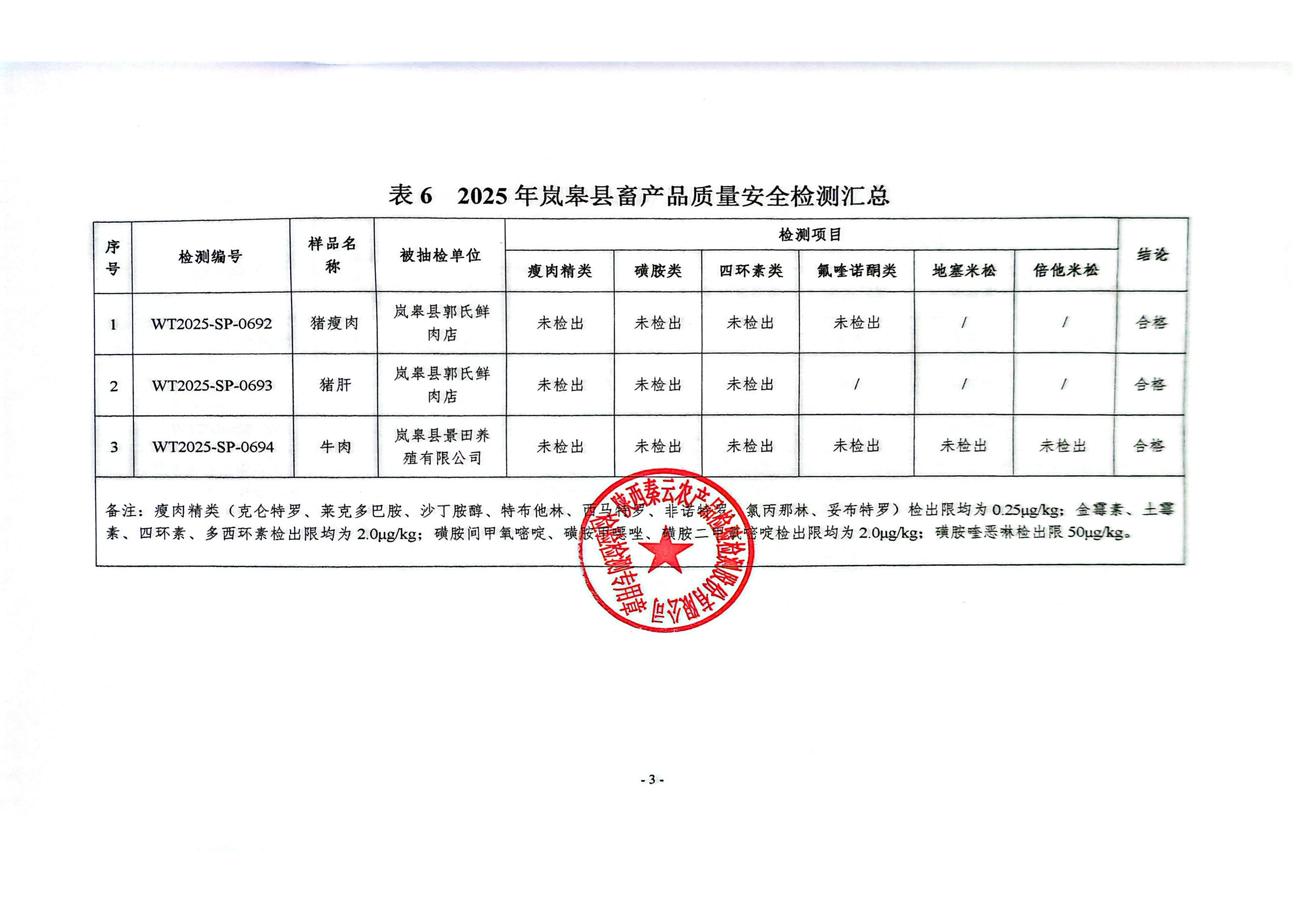 2025年第一季度岚皋县农产品质量安全监测结果汇总-畜牧业